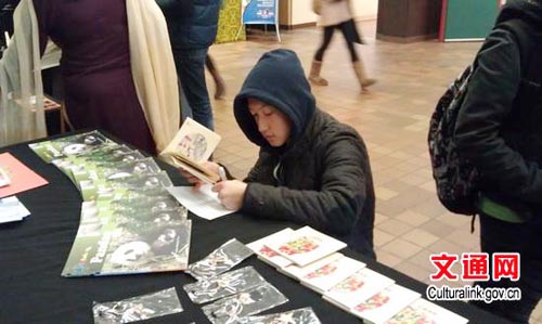 活动正值马年春节,中国驻温哥华总领事馆以春节饰品点缀展位,以中国剪纸装饰背板,并以展台上琳琅满目的画册、图书及各式小纪念品吸引了众多师生。