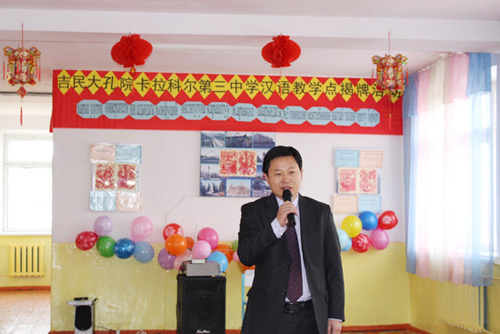 中新网2月24日电 据国家汉办网站消息,2月19日吉尔吉斯国立民族大学孔院于卡拉库尔市第三中学举行了汉语教学点揭牌活动。