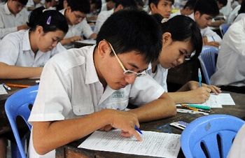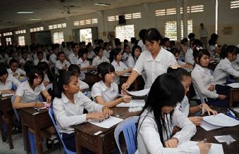 1月10日,柬埔寨最大的华文学校——端华学校毕业大会考在该校礼堂举行。参加考试的547名同学分别是该校小学、初中和专修毕业班学生。目前,柬埔寨全国共有59所华文学校,3万多名在校生。(雷柏松 摄)