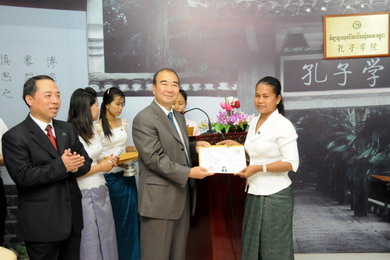 潘广学在讲话中表示,中柬同为历史悠久的文明古国。柬埔寨王家研究院孔子学院是促进中柬文化交流的重要桥梁,为广大柬埔寨朋友学习中文技能、研究中国文化、了解中国发展提供了良好条件。亚欧大学汉语教学点的设立,将进一步带动中柬文化交流和民间友好交往。他希望双方共同努力,通过孔子学院这个平台,增进两国人民相互了解和友谊,促进双方文化、教育交流,为中柬友谊作出新的贡献。