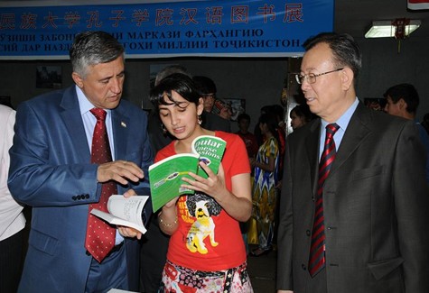 此次汉语教材图书展由塔吉克斯坦民族大学孔子学院主办,中国驻塔吉克斯坦大使左学良与塔吉克斯坦文化部部长阿斯洛里(ASRORI)出席并共同主持剪彩仪式。左学良在致词中表示,举办汉语教材图书展是一种非常好的文化交流形式,相信也必将对塔吉克斯坦的汉语教学起到积极的推动作用。阿斯洛里在讲话中对图书展的成功举办表示欢迎与祝贺,并且强调希望以后能够开展更多两国间的文化交流活动。