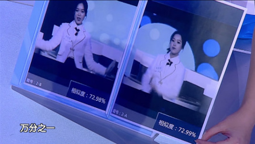 在第一轮比赛中,小度和人类选手需要通过分析照片中出现的幼年人脸,来识别出现场20年后的成年人,面对双胞胎识别这一难题,小度精准识别,以72.99%—高于第二张0.01%的识别率成功锁定目标,而名人堂王峰则1:0落败。