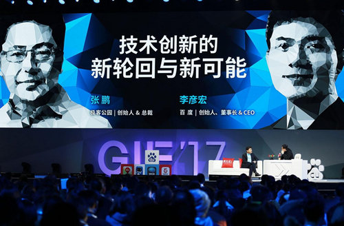 中新网1月16日电 “人类发明计算机后,人一直在学机器的语言,学C语言,学JAVA语言,以后应该是机器学人类的语言。这是一个多神奇的事情,我在跟这个桌子、椅子进行交互的时候,我说的是人话。”李彦宏在2017极客公园创新大会上,如此描画他眼中的智能时代。