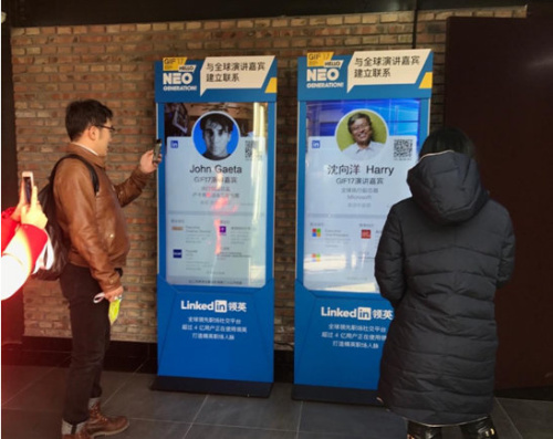 中新网1月17日电 1月13日-1月15日,极客公园创新大会(GIF2017)在北京隆重开幕。全球最大的职场社交平台LinkedIn(领英)首次携手行业顶尖峰会GIF, 线下展出演讲大咖领英数字名片,参会者均可通过扫描现场大屏幕上的二维码获取演讲嘉宾的职业信息,并发送好友申请、立即与大咖建立线上联系。此次领英与极客公园的合作极大促进了会议的信息交流,为参会者与嘉宾之间建立长期联系提供了最直接的交流工具,帮助他们拓展职场人脉、发现更多商业机会,使每个参会的人都能充分地发掘线下会议的职场资源。