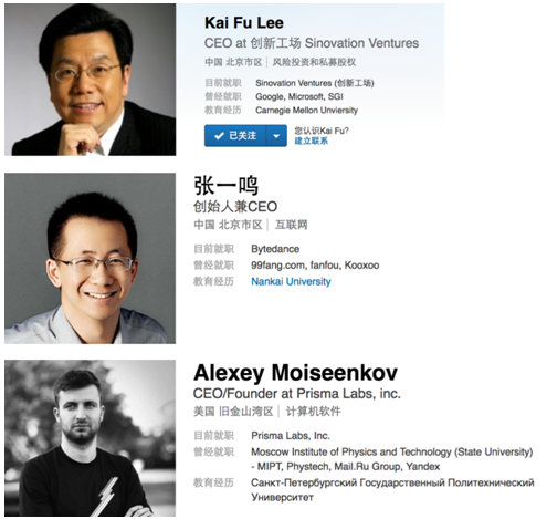 历届GIF大会的部分演讲嘉宾领英名片截图