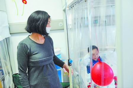 王海莹说,夫妇俩都是汝南县三门闸乡的普通教师,工资不高。2008年7月4日,小王冠被查出患上急性淋巴细胞白血病,为救孩子,夫妇俩花光了积蓄,卖掉了房子,借遍了亲友,已花了近20万元,社会各界热心人士也纷纷献出爱心,捐款救助。夫妇俩艰难支撑着,希望等待能有骨髓移植的机会。今年2月19日,小王冠再次发病,且病情严重。“儿子病复发,如晴天霹雳一般,我差一点晕倒。”王海莹在博文中记下当时的心情。“等化疗后,控制住病情,就可以进行骨髓移植,治愈的希望还是非常大的。”主治医生徐学聚教授介绍,而一般骨髓移植的费用要20多万元。无奈之下,王海莹含泪写下这篇“出卖”后面人生的博文,期待着能为孩子的生命带来转机。(大河报 记者 蔡君彦 文 许俊文 图)