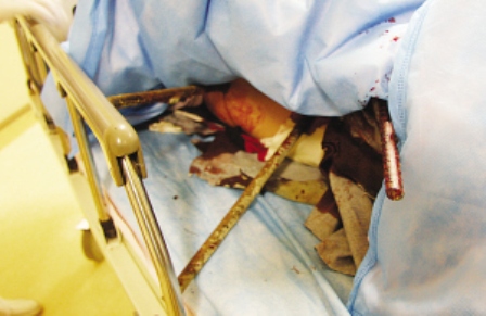 昨晚9点,记者从明基医院了解到,3根钢筋已被手术取出。据主刀医生介绍,伤者左侧坐骨神经有挫伤,左髋骨贯通伤,钢筋没有伤及大血管,手术后已被转入ICU重症监护室观察,目前生命体征平稳。 (肖雷 李海勇)