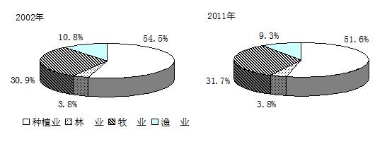 图6 2002、2011年农业产值结构变化
