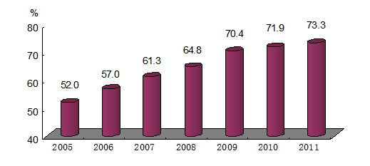 图5 2005-2011年四大作物综合优质率