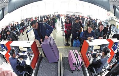 1月16日,旅客在银川河东国际机场办理登机手续。本报记者 李靖 摄