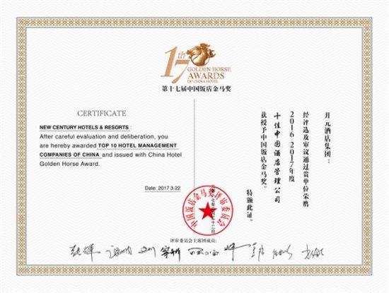 开元酒店集团荣获 “十佳中国酒店管理公司”