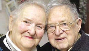 英国汉普郡滑铁卢维尔市84岁老翁约翰·比尤沃辛和81岁妻子玛格丽特尽管都已年过8旬,但他们仍像60年前刚刚结婚时那样恩爱甜蜜。