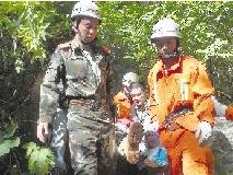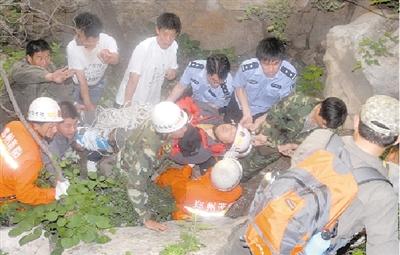得知消息,登封市户外救援队“少林”“二马”“牵手”“兵舰”“细雨”等驴友配合赶来的登封市公安局交警大队、大金店派出所、消防大队、少林寺管理局等单位的救援队员,攀越400多青石台阶的好汉坡,进入丛林深处的峡谷。