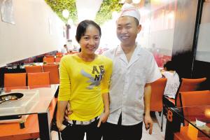 又一拨客人进门,一身穿T恤、系着围裙的娇小服务员上门迎客。把客人引进包间坐下,她又端来茶壶为客人斟上茶,一系列动作熟练而利落。