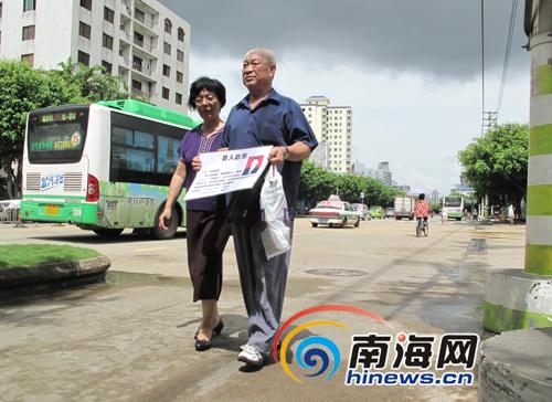 来自西安的刘瑞霞女士与老伴举寻人启事穿梭在海口的大街小巷中 (南海网记者 陈望摄)