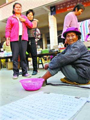 八旬老太在市场上乞讨 筹钱给重病孙子治病(图)
