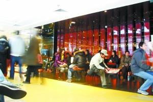 昨天中午,在繁华的西单大街上,一家商场里的餐馆外坐满了等候就餐的顾客。 王希宝摄