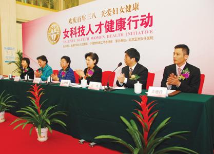 中新网3月17日电 近日,全国妇联妇女发展部、中国女科技工作者协会共同启动公益项目——“女科技人才健康行动”,此项目依托北京五洲女子医院的优势资源,为千名女科技人才提供先进的健康管理服务,着力改善和提升女科技人才群体的健康水平与生活质量。十届全国人大常委会副委员长、原全国妇联主席顾秀莲,全国妇联副主席、书记处书记孟晓驷等领导同志及女科技人才代表一百多人出席项目启动仪式。