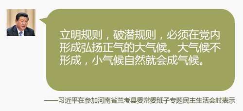 立明规则,破潜规则,必须在党内形成弘扬正气的大气候。大气候不形成,小气候自然就会成气候。