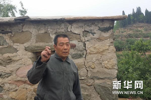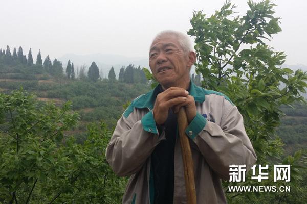 岗底村村民杨仁书今年60岁,1996年李保国到岗底的时候,杨仁书一家年收入也就四五百元。如今种有500棵果树的他,日子好过多了,去年收成不大好,杨仁书一家还收入了10多万元。图为杨仁书讲述这些年的生活变化。新华网记者 张雪花 摄