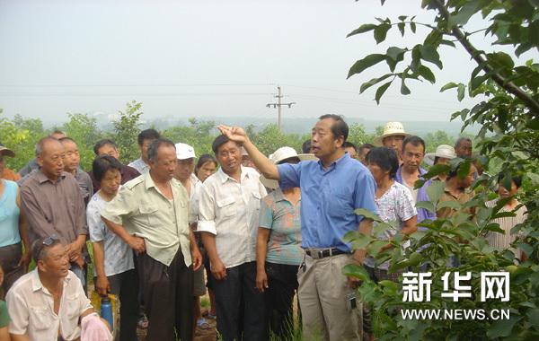 李保国生前提出要把太行山区产业带统一整合,串成一条线,给太行山系上既有显著生态效益又有显著经济效益的“金腰带”。如今他走了,他的骨灰被太行山各地的老乡们带走,撒在他生前为之奋斗的土地上。巍巍太行,永远不会忘记这个深刻在百姓心坎的名字——李保国。图为李保国生前为农民讲授果木技术。(资料图片)
