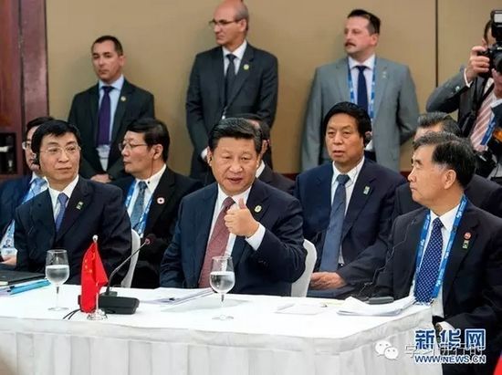2014年11月15日,金砖国家领导人非正式会晤在澳大利亚布里斯班举行,中国国家主席习近平出席。新华社记者李学仁摄