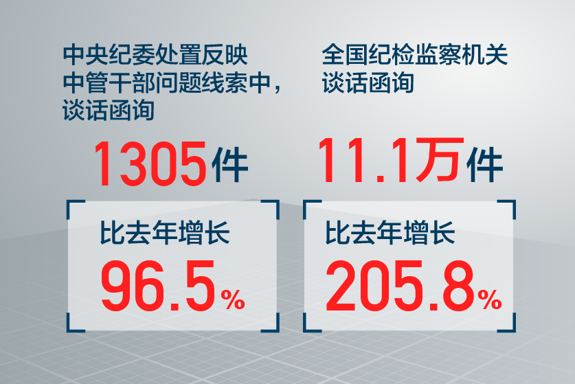 今年1至11月,中央纪委处置反映中管干部问题线索中,谈话函询1305件次,比去年同期增长96.5%。