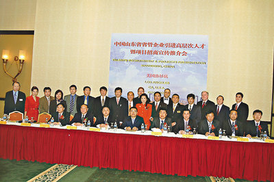 中新网12月21日电 据美国《世界日报》报道,山东省省管企业引进高层次人才暨项目招商宣传推介会18日在洛杉矶圣盖博希尔顿酒店举行。山东方面招才领域有十几个企业49个高级职位,包括董事、经理、资本运营、冶金、电气、煤化工、机械制造、IT技术、金融证券、基础设施、酒店管理等。推介会由山东同乡联谊会协办。中国驻洛杉矶总领事馆新闻领事乐利文及部分民选官员、社团侨领和工商业人士也应邀出席。