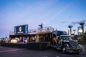 发布会当日,联盟电竞旗下北美首辆移动电竞大篷车首度亮相拉斯维加斯,该车身长度近25米,相当于6辆家用汽车,配有电竞舞台、导播间、多媒体中心和VIP休息室,一个按键就能展开一个设施齐全的电竞馆。据了解,电竞大篷车搭载的显示器,由联盟电竞旗下圣安娜电竞馆的合作伙伴之一美国LG电子提供支持,采用的是正在2018 CES(2018国际消费电子展)上展出的最新LG游戏显示器(34GK950G)。