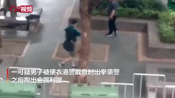 5月3日中午,据香港东网报道,香港上水一公园突发“袭警”事件。当时,一名可疑男子正被一名便衣港警截查,突然出拳袭击,并用胸部顶撞港警。男子之后更是掏出金属利器,便衣港警立刻警戒,迅速拔枪和男子展开对峙。最后便衣警察将男子制服,多名警员也增援到场。(制作 王嘉怡)