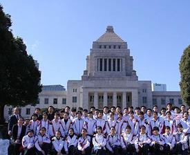 其后,抚顺一中的师生们走进日本国会议事堂,参观了众议院,了解日本的政治结构、体系。