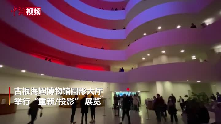 当地时间5月30日,美国纽约古根海姆博物馆圆形大厅举行“重新/投影” 展览。展览通过圆形大厅悬空的银幕展示艺术动态影像,以往展陈艺术作品的环形廊道变为观众流动观影区域,核心大厅变身为“动态影像馆” 。自重新开放以来,该馆一直保持这种空间疏离的艺术观赏方式。(记者 廖攀 制作 吴瑞)