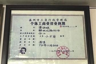这份加盖着温州市工商局鲜红印章的证书,成为中国改革开放后的第一张个体户营业执照,象征着章华妹成为了全国首批1844户“持证上岗”的个体户中的第一人。