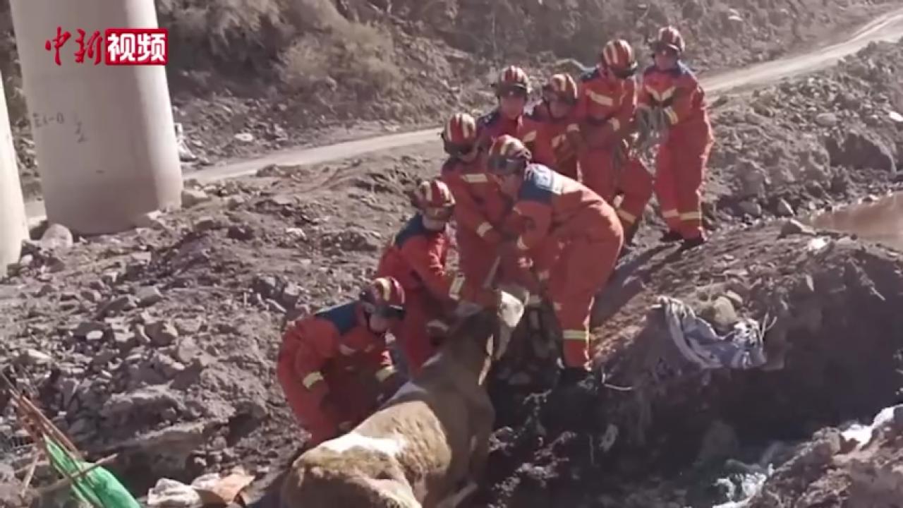 二次抛绳拴角成功后,消防员缓缓将母牛拖引至地势相对较缓处,而后合力拉拽。五六分钟后,母牛终于被拉上岸。(完)