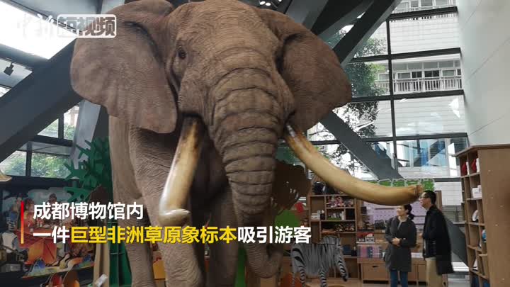 10月11日,成都博物馆内一件巨型非洲草原象标本吸引参观者。据了解,非洲草原象是世界上最大、最重的陆生哺乳动物。该标本为已故美国环球健康与教育基金会主席肯尼斯·尤金·贝林于2016年捐赠,并于2019年10月初正式在成都博物馆展出。大象标本重约2吨,长近5米,高逾3米。(记者 张浪 编辑 周璟)
