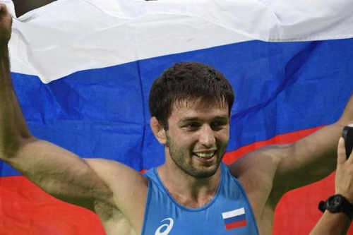 8月21日,俄罗斯选手拉莫诺夫(右)与阿塞拜疆选手阿斯加洛夫在决赛中争夺。当日,在2016年里约奥运会摔跤男子自由式65公斤级的决赛中,俄罗斯选手拉莫诺夫战胜阿塞拜疆选手阿斯加洛夫,获得冠军。新华社记者武巍摄