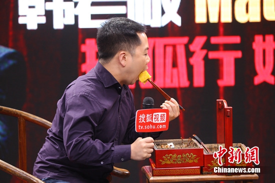 马修•莫伊今天一亮相就引发现场尖叫,他也不改剧中幽默,在现场用广东话讲“饺子”等食物的中文名,更笑言被自己说饿了。面对主持人送上的点心,马修十分兴奋,连忙用不熟练的姿势拿起筷子,吃完炒肝吃泡椒凤爪,在大呼美味的同时,还直接把凤爪的骨头也吞下肚子。
