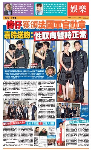 中新网6月9日电 据香港“明报”消息,继早前刘嘉玲获得舞台剧“最佳女主角(悲剧/正剧)”奖,老公梁朝伟昨日接受法国文化及通讯部颁授“法国艺术与文学军官勋章”,以表彰其在电影艺术领域的杰出成就,成为首名获得“军官勋位”的华人男演员。为庆祝老公获得喜人成绩,刘嘉玲更送上香吻,以行动击破分居传言。