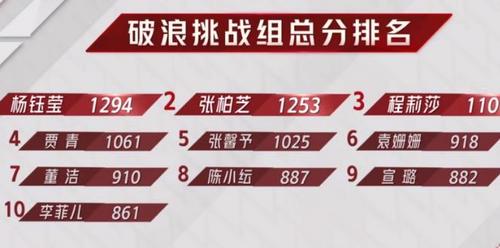 此外,“破浪挑战组”获得了三个换位名额。组内总分排名前三位的杨钰莹、张柏芝、程莉莎进入了“乘风守擂组”。同时,“乘风守擂组”个人喜爱度排名后三位的蒋璐霞、左小青、金巧巧进入了“破浪挑战组”。