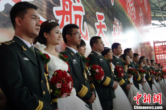 总装某基地“八一”前夕为官兵举办集体婚礼(图)