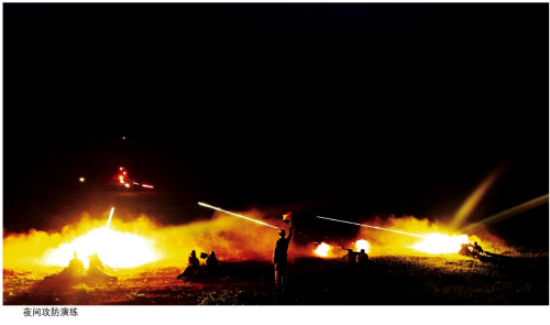 在伸手不见五指的夜空下,记者用镜头记录下济南军区某海防团组织的一场实兵实装实弹演习。