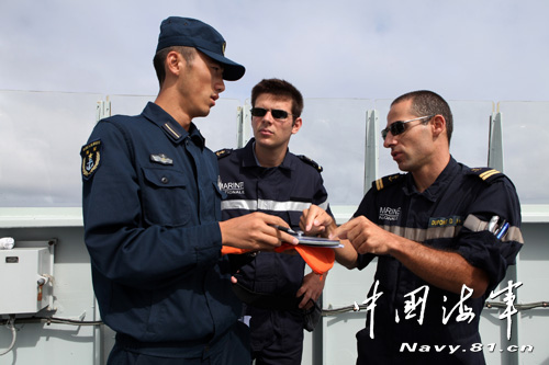 此次环球远航训练,中方共邀请了来自美国、加拿大、法国、韩国、印度、孟加拉、巴基斯坦、印尼、文莱等9个国家的16名海军学员和军官,与我海军学员同住、同吃、同训练,尽管他们国籍、民族、信仰和风俗不同,但相同的海军知识把大家连在了一起。
