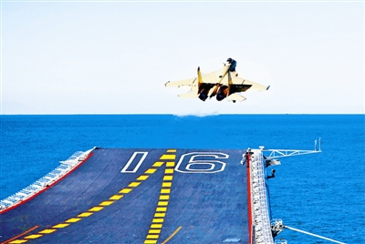 歼—15飞机在“辽宁舰”上起飞。 本报特约记者 李 唐摄
