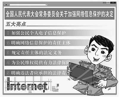 去年12月28日,全国人大常委会通过《关于加强网络信息保护的决定》,这与世界各国的通行做法相一致,是运用法治思维和法治方式深化改革、推动发展、化解矛盾的具体体现。(丛文胜)