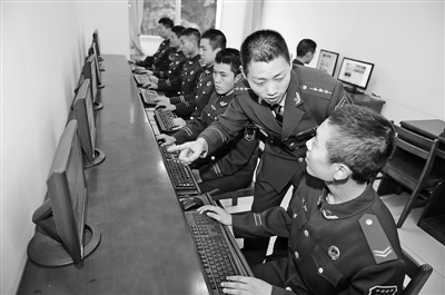 1月上旬,武警重庆市总队派出法律工作者深入基层中队宣讲新出台的加强网络信息保护的决定,教育引导官兵切实遵守相关规定和保密法规,强化网络信息安全意识,防止因个人信息泄露给不法分子以可乘之机。图为1月14日,总队法律服务小组成员袁景昭(右二)在直属警勤中队网络室向战士讲解网络信息安全常识。(张春华 摄)