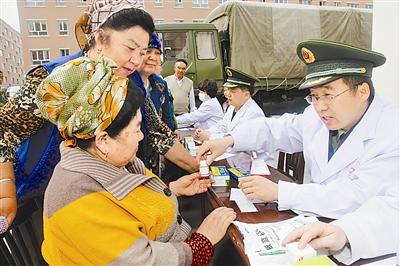 5月11日,武警驻新疆伊宁某部组织医护人员深入街道社区开展“卫士健康行”活动,为各族群众进行健康查体、赠送药品、发放季节性防病知识宣传手册,把健康和关爱送到群众心坎里。张 杨摄