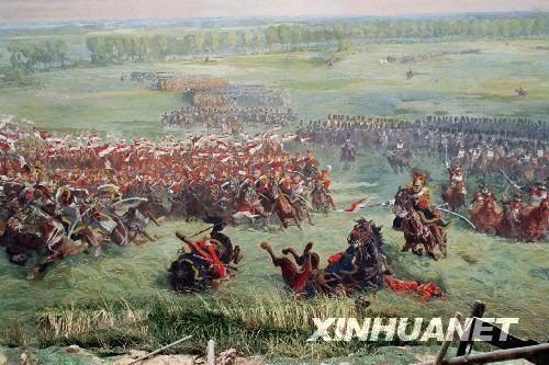 1815年6月18日,以拿破仑为统帅的法国军队同以英国人威灵顿公爵为统帅的欧洲联军,在位于比利时首都布鲁塞尔以南约20公里处的滑铁卢镇,展开了一场惊心动魄的大决战。这场决战持续了大约12个小时,最终以不可一世的法国皇帝拿破仑战败而告终。从此,拿破仑一蹶不振,滑铁卢也成了“失败”的代名词。这是在滑铁卢古战场纪念馆内表现英国威灵顿公爵统帅联军转入反攻的壁画的局部。新华社发