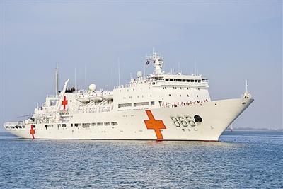 图片:6月16日,中国海军“和平方舟”号医院船抵达文莱。 新华社发