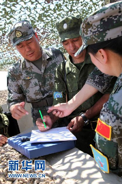 “和平使命—2012”联合军演中,赵勇团长同友军协商演习事宜