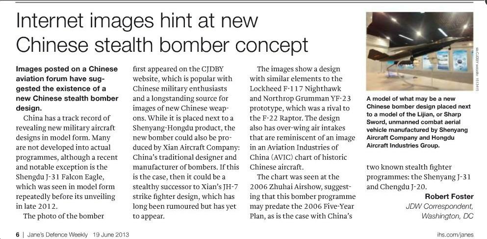 简氏原文截图:疑似中国新轰炸机模型曝光